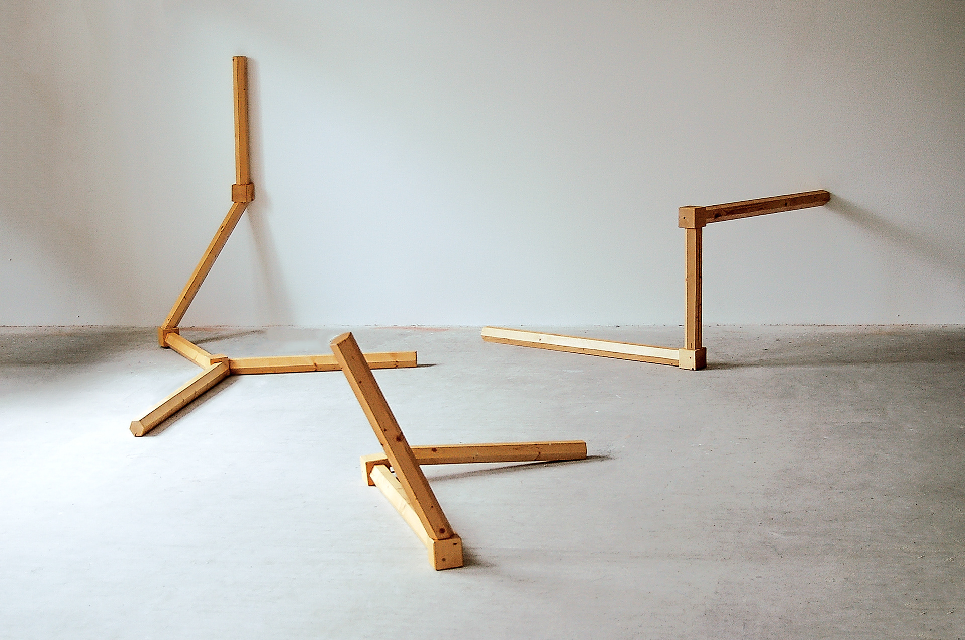 An installation deals with the principle of media coverage and the problems of mass media communication, which often creates a completely different nature and another world. A purely geometric and minimalistic shape of wooden beams changes as a result of the host parasite on biomorphic element of completely different character than the original.